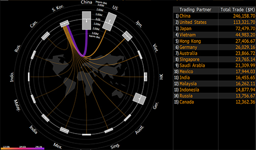 Kim ngạch thương mại của Hàn Quốc năm 2016. Ảnh: Bloomberg