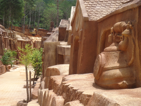 Đấy là những giai đoạn khởi nguồn, với những cánh rừng cổ đại, những gốc cây cổ thụ quằn quại chùm rễ, rồi những đàn voi hoang dại kéo nhau đi từng bầy. Rồi những con chim, con bướm, con ong bay rạo rực cả không gia thuở hồng hoang. Những bông hoa, những trái cây như tỏa hương bên ầm ào đổ thác. Những ngôi nhà cổ của người dân tộc H"co. Những đám mây lang thang trên cao nguyên Langbiang. Tiếp đó, hình ảnh thành phố trong quá trình xây dựng, phát triển. Những công trình kiến trúc đẹp tiêu biểu của Đà Lạt được tái tạo. Nào trường cao đẳng sư phạm, nhà ga xe lửa, nhà thờ, chùa chiền, hồ nước, thác nước, biệt thự cổ, đầu máy xe lửa chạy bằng hơi nước, xe vespa cổ, đồng hồ cổ, điện thoại cổ, rồi những rặng cây hoa mai anh đào đặc trưng của Đà Lạt bằng đất nom lung linh, sống động như thật.
