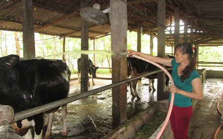 Để chắc chắn hơn, anh chị dành 2ha trồng cỏ cho bò và ra tận Mộc Châu (Sơn La), Ba Vì (Hà Nội) để tham quan học tập thêm kinh nghiệm. Đến nay, đàn bò sữa của anh chị đã có 16 con, trong đó nhiều con cho sản lượng sữa cao (30 lít/ngày). Mỗi ngày anh chị xuất bán 1,5 tạ sữa với giá 12.000-14.000 đồng/lít. Chỉ sau 2 năm, anh chị đã trả hết nợ và làm được ngôi nhà mới khang trang.
