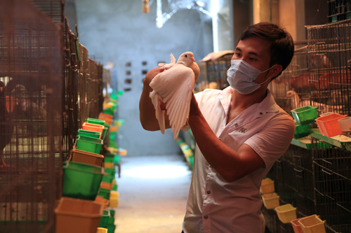 Từ năm 2010, Phúc bỏ thành phố về quê nuôi chim. Giờ anh đã có 3 trang trại nuôi 5.600 chim bồ câu và hơn 600 chim cu gáy. "Năm tôi bắt đầu theo nghiệp nuôi chim, ít ai nuôi quy mô thế này", chàng trai chia sẻ, khuôn mặt rạng ngời vẻ hạnh phúc.