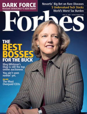 Meg trên bìa tạp chí Forbes năm 2007 khi được bầu chọn là CEO có mức thu nhập cao nhất. |