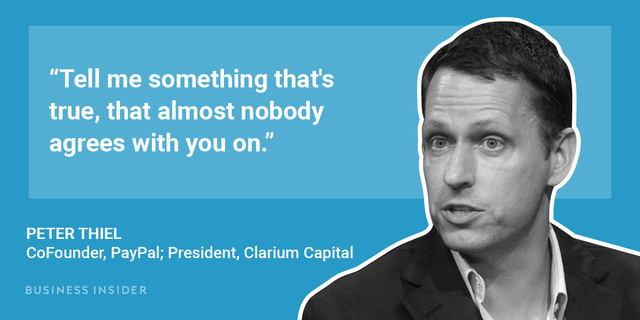 Peter Thiel luôn muốn tuyển chọn những ứng viên không ngại nói ra suy nghĩ của mình. Để làm được điều này, Peter Thiel thường xuyên sử dụng câu hỏi phía trên.