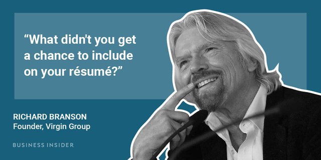 "Tất nhiên, một CV tốt là điều quan trọng, thế nhưng nếu bạn muốn tuyển một người chỉ vì những gì người đó mô tả bản thân trên một tờ giấy, có lẽ bạn chẳng cần tới buổi phỏng vấn làm gì. Đó là lý do vì sao tôi hỏi câu hỏi kia", Branson nói.
