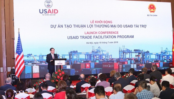 11/07/2019 10:32 AMNgày 10/7, Cơ quan Phát triển Quốc tế Hoa Kỳ (USAID) và Bộ Tài chính Việt Nam tổ chức hội nghị khởi động dự án Tạo thuận lợi Thương mại do USAID tài trợ. Dự án được thực hiện trong 5 năm với ngân sách 21,7 triệu USD nhằm hỗ trợ Chính phủ Việt Nam áp dụng và triển khai cách tiếp cận quản lý rủi ro đối với cơ quan hải quan và các cơ quan kiểm tra chuyên ngành.