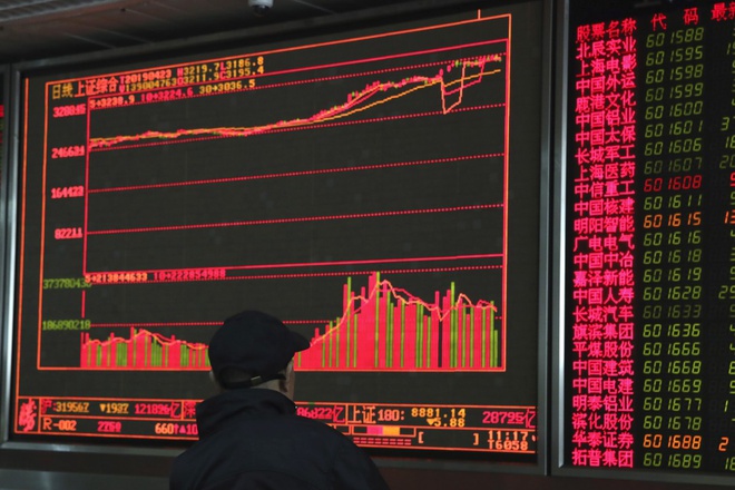 Tại Trung Quốc, chỉ số chứng khoán Thượng tăng 22,3%. Ảnh: SCMP.