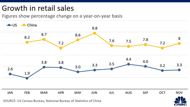 Doanh số bán lẻ ổn định: Tiêu dùng là điểm sáng của cả nền kinh tế Mỹ và Trung Quốc trong năm 2019 nhờ thị trường lao động ổn định.