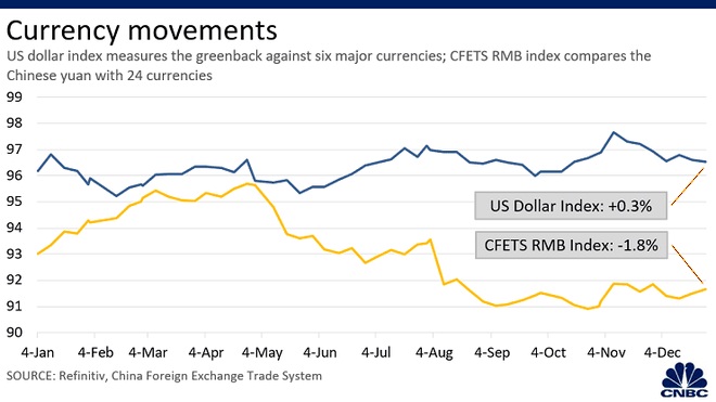 Ngược lại, chính quyền Trung Quốc hạ giá đồng NDT, khiến Tổng thống Mỹ Donald Trump gọi Bắc Kinh là "quốc gia thao túng tiền tệ”. Tuy nhiên, Quỹ Tiền tệ Quốc tế (IMF) nhận định giá của đồng NDT phù hợp với thực trạng kinh tế Trung Quốc. Ảnh: Forbes.