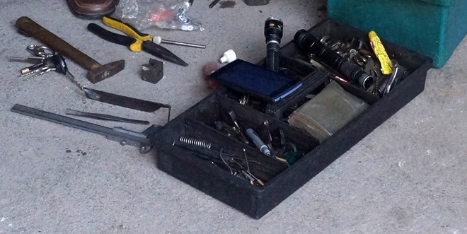 Đồ nghề của một locksmith (thợ sửa khóa) khá đơn giản, vốn ít. Ảnh: Diệp Sa