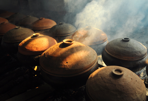 Giáp ngày 23 tháng Chạp, căn bếp hơn 40m2 luôn nóng ran với hơn một trăm niêu cá đang sôi dù tiết trời đang rét. Các cánh cửa mở toang, quạt thông gió hoạt động hết công suất vẫn không giúp căn bếp thoáng khói. Nhân công thay phiên nhau canh lửa, kiểm tra nồi. "Cá cần được kiểm tra liên tục, cạn nước phải đổ thêm, đun chưa đủ thời gian thì chưa được bắc ra khỏi bếp", một thành viên gia đình ông Thỏa vừa nói vừa dụi đôi mắt đỏ hoe vì khói.