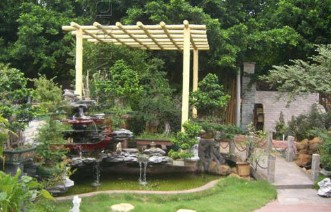 Ngoài đầu tư vào ngôi nhà, khu vườn cũng tốn hàng trăm triệu đồng.