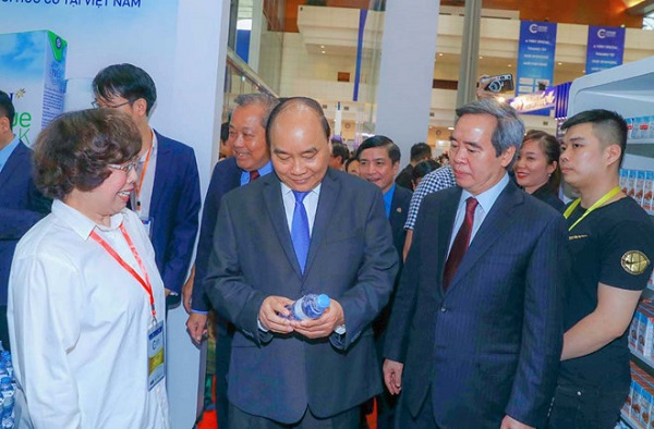 Thủ tướng Chính phủ Nguyễn Xuân Phúc và đoàn đại biểu cấp cao thăm gian hàng của Tập đoàn TH tại Triển lãm Thành tựu Kinh tế tư nhân 2019 chiều 2.5