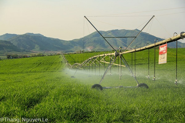 Cánh tay tưới công nghệ cao trên cánh đồng cỏ của trang trại TH. Công nghệ cao được TH xác định là “chìa khóa vàng” cho nông nghiệp