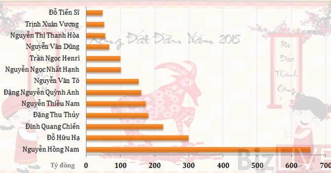 Tài sản của các đại gia tuổi Mùi giàu nhất sàn chứng khoán (Đơn vị: Tỷ đồng)