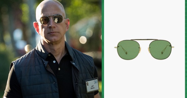 Kính aviator (còn gọi là kính phi công, kính chuồn chuồn...) được đánh giá là không bao giờ lỗi mốt; chiếc mà chủ nhân Amazon đeo trong bức ảnh nổi tiếng mang nhãn hiệu Garrett Leight Van Buren, loại có thể gập đôi và trị giá 365 USD (8,5 triệu đồng).
