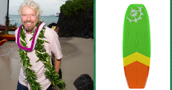 Ông chủ tập đoàn Virgin là tín đồ của lướt ván diều và càng dễ dàng thỏa mãn đam mê khi sở hữu hòn đảo riêng ở Anh. Chiếc ván trượt ông Branson sử dụng lúc tiếp cựu tổng thống Mỹ Barrack Obama đến chơi đảo Necker là sản phẩm của thương hiệu Slingshot Dwarfcraft. Nó có giá 699 USD (16 triệu đồng).