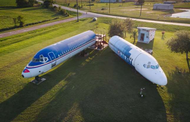 Phi công Joe Axline chế tạo 2 xác máy bay cũ thành nhà ở vào năm 2011 và gọi chúng là Project Freedom. Bên trong mỗi thân máy bay này đều được trang bị các tiện nghi đầy đủ như phòng khách, phòng tắm, phòng ngủ, và nhà bếp. Hiện Project Freedom nằm ở bang Texas, Mỹ. Ảnh: Plane Home.