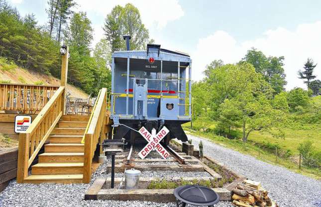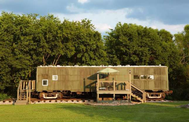 Nằm dưới chân dãy núi Great Smoky, bang Tennessee (Mỹ), một toa tàu hỏa vốn được dùng trong Thế chiến II nay được cải tạo thành nơi nghỉ dưỡng ở vùng đồng quê. Bên trong toa tàu được trang bị đầy đủ các tiện nghi cần thiết với điểm nhấn là phòng tắm bằng đá cẩm thạch sang trọng. Ảnh: Airbnb.