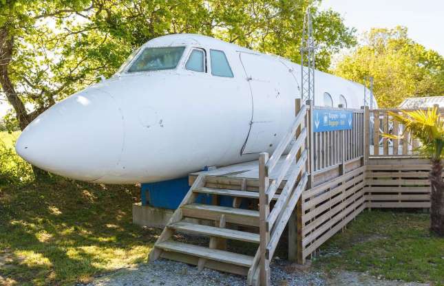 Một xác chiếc máy bay phản lực đã trở thành một trong những nhà nghỉ kỳ lạ nhất ở vùng Brittany nước Pháp. Bên cạnh khu vực sinh hoạt, nhà nghỉ này còn cung cấp các tiện nghi giải trí như hồ bơi và ống trượt nước. Ảnh: Airbnb.
