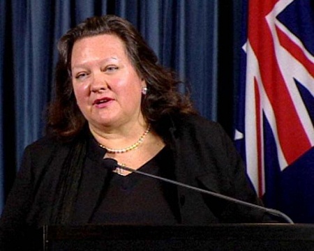 Thời gian gần đây, bà Rinehart thường xuyên xuất hiện trước công chúng và trở thành nhân vật phản đối quyết liệt chính sách thuế mới của chính phủ Australia dù trước đó bà rất kín tiếng. Trong một lần phát biểu, bà Rinehart đã đứng trên một chiếc xe tải, trên tay cầm loa phóng thanh và kêu gọi mọi người cùng phản đối loại thuế Tài nguyên khoáng sản mới sẽ áp dụng đối với ngành khai khoáng. Loại thuế này được áp dụng bắt đầu từ tháng 7 và sẽ lấy đi 30% lợi nhuận đối với các ngành khai thác than, quặng sắt của các công ty khai khoáng. Loại thuế này sẽ ảnh hưởng rất lớn đến các công ty khai khoáng có lợi nhuận hàng năm đạt khoảng 75 triệu USD. Bà Rinehart tin rằng, loại thuế mới này sẽ ảnh hưởng đến các khoản đầu tư trị giá hàng triệu USD của các nhà khai khoáng.