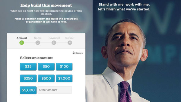 Giao diện trang web quyên góp và gây quỹ cho chiến dịch tranh cử chức tổng thống của ông Obama. |