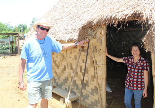 Vợ chồng James bên căn nhà tranh theo đúng nguyên mẫu của người bản địa.