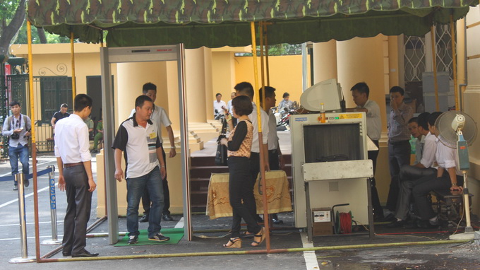 Kiểm tra an ninh nghiêm ngặt trước khi vào tòa - Ảnh: Tâm Lụa