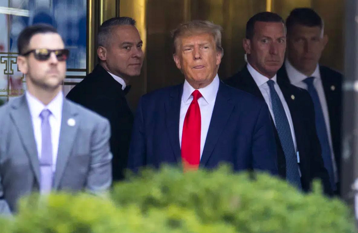 Ông Trump rời Tháp Trump ở New York đến Tòa án hình sự quận Mahattan. Ảnh:AP