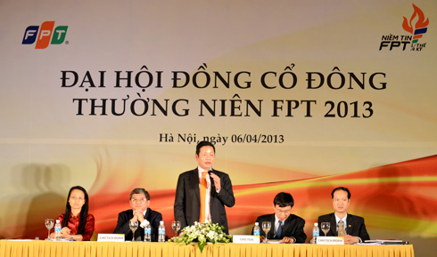 Tại đại hội cổ đông năm nay, FPT cũng trình cổ đông các mục tiêu kinh doanh năm 2013, trong đó doanh thu toàn công ty dự kiến tăng thêm 6% so với 2012, ở mức 26.926 tỷ đồng. Lợi nhuận trước thuế cũng lên 10%, đạt 2.646 tỷ đồng.
