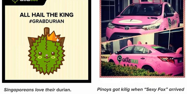 Người Singapore thích sầu riêng, GrabTaxi ra chiến dịch sầu riêng mang tên GrabDurian. Theo đó, người dùng có thể đặt một hộp sầu riêng Miêu San Vương (Mao Shan Wang, còn có tên Musang King) - loại sầu ngon bậc nhất có xuất xứ từ Malaysia chỉ với 10 đô la Singapore và sẽ được giao hàng bởi một đội quân ‘Grab sầu riêng đặc biệt’.