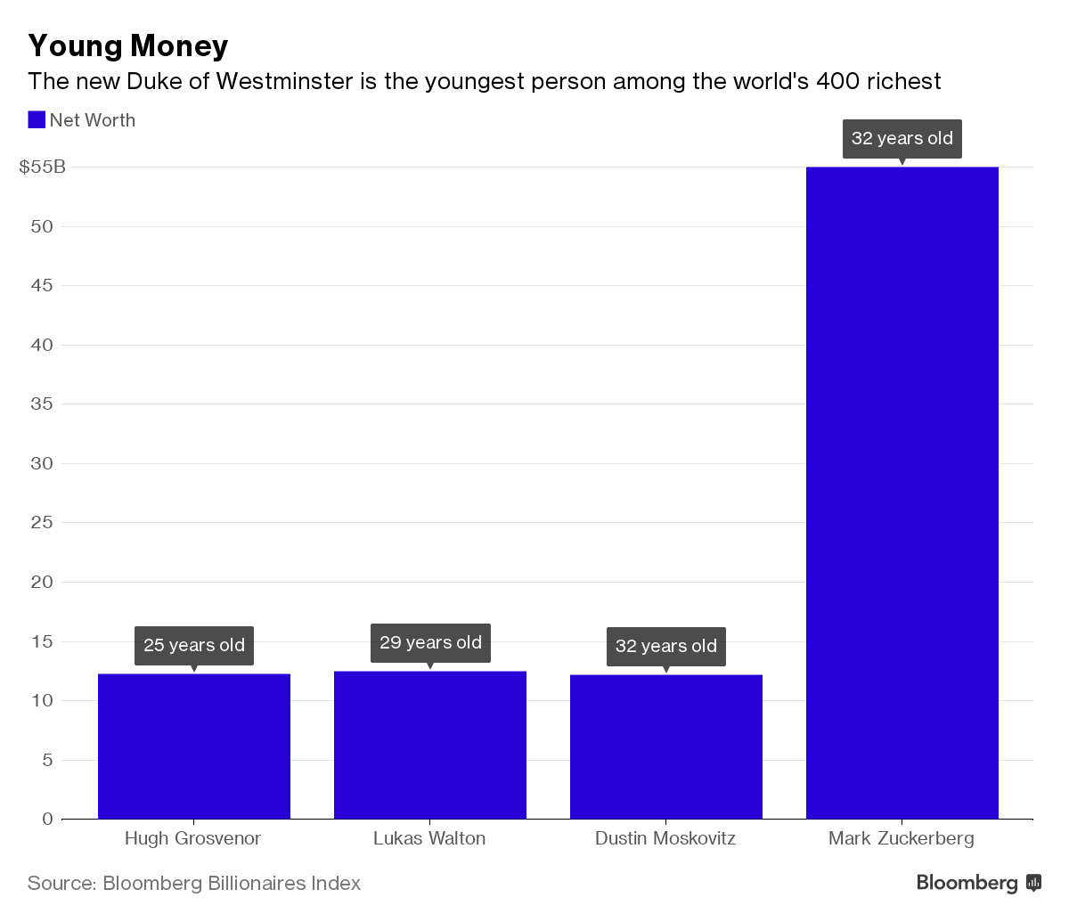 Grosvenor đã chính thức gia nhập Top 400 người giàu nhất của Bloomberg và là một trong những gương mặt trẻ nhất trong danh sách này.
