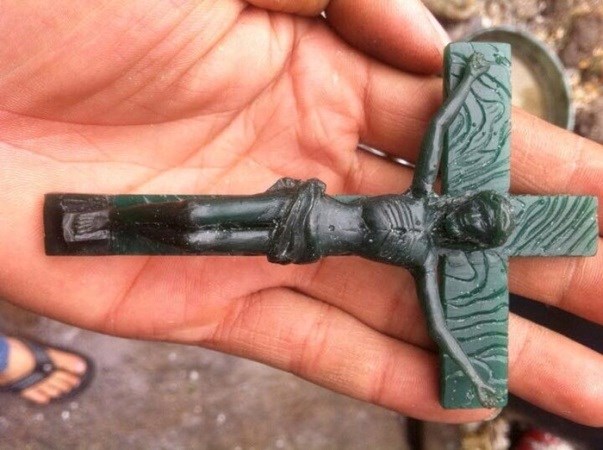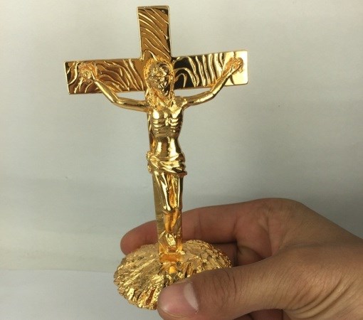 Biểu tượng Chúa Giê-su mạ vàng có trọng lượng 200 gram, chiều cao là 12 cm...