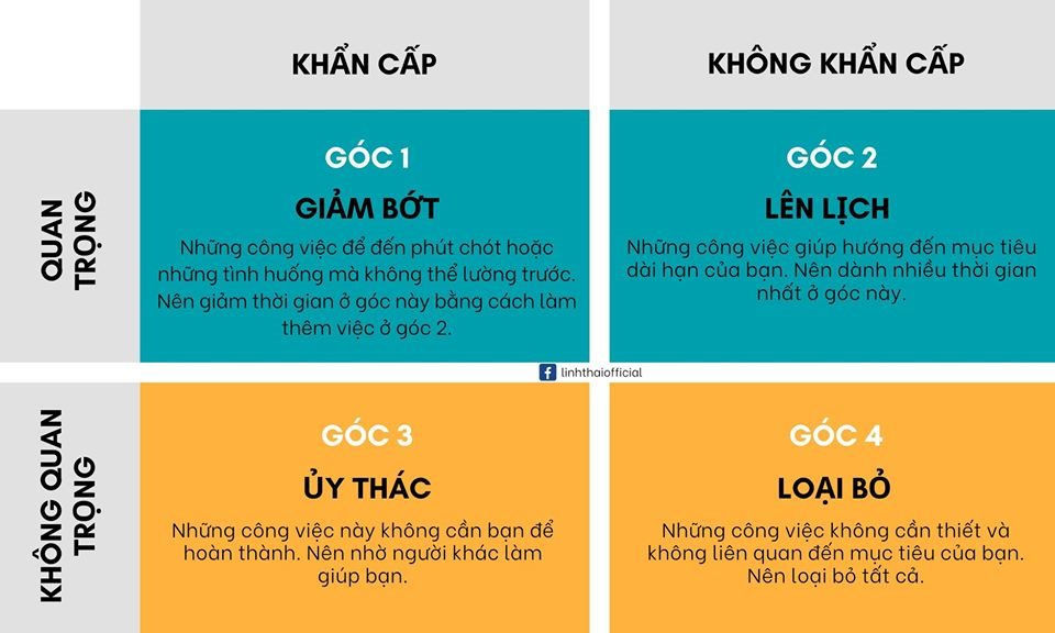 Shark Linh cho biết, mục tiêu tổng thể là đảm bảo bạn dành đủ thời gian cho các nhiệm vụ Góc 2, để chúng không trở thành các nhiệm vụ Góc 1.