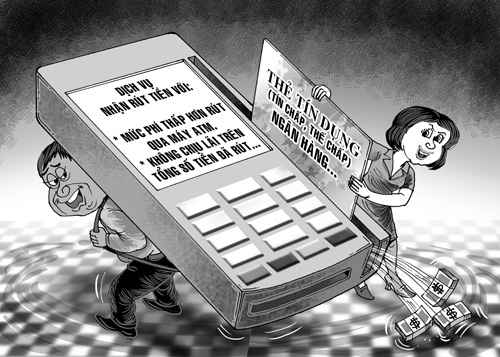 Theo NHNN, tính đến tháng 9, thẻ tín dụng chiếm gần 4% tổng số các loại thẻ các ngân hàng phát hành, tương đương với 3 triệu thẻ. Cả nước có gần 160.000 máy chấp nhận thanh toán POS và hệ thống chấp nhận thẻ POS trên toàn quốc đã liên thông với nhau. Các NH hiện nay phát hành thẻ tín dụng dưới 2 hình thức tín chấp và thế chấp. Dựa vào thu nhập, hay số tiền thế chấp, NH sẽ cấp cho chủ thẻ một hạn mức tín dụng từ 10 triệu đồng đến 1 tỉ đồng. Ưu điểm của thẻ tín dụng là được miễn phí, lãi khi mua sắm hàng hóa, dịch vụ trong vòng 45 ngày. Tuy nhiên, nếu chủ thẻ dùng thẻ tín dụng rút tiền mặt từ máy ATM sẽ bị tính phí rút tiền 4%/tổng số tiền rút, đồng thời số tiền này ngay lập tức bị tính lãi suất từ 1,9 - 2,2%/tháng (22,8 - 26,4%/năm).