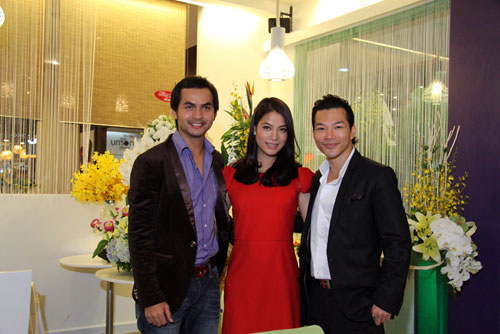 Vợ chồng Trương Ngọc Ánh cùng người mẫu Đức Tiến trong ngày khai trương nhà hàng - Ảnh: Đ.C.H.N