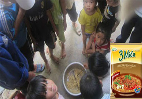 Thông tin từ bà Xuân cung cấp: Vào ngày 13/8, bà Xuân đã mua 10 gói mỳ tôm "3 Miền" loại 10 gói đóng chung một bịch được sản xuất ngày 14/7/2013, tại một đại lý bản lẻ ở cùng xóm.