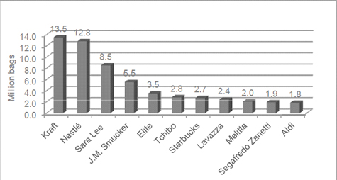 Danh sách các nhà rang xay đang chi phối ngành ccà phê thế giới năm 2010 (Nguồn: ICO)