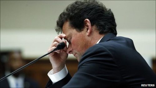 CEO của BP - ông Tony Hayward - đã bị chỉ trích gay gắt trên truyền thông Mỹ. Ảnh: Reuters