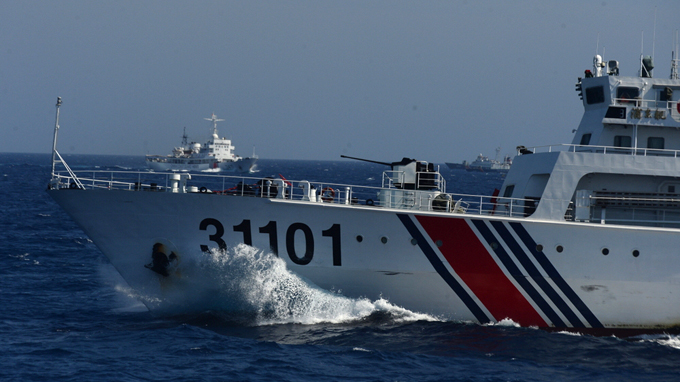 Tàu Trung Quốc trang bị vũ khí luôn tăng tốc, cản phá tàu Việt Nam - Ảnh: Thuận Thắng