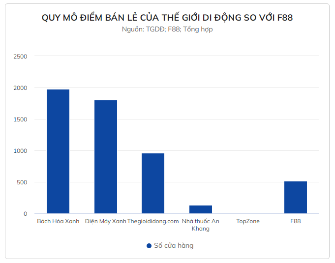 Trên thị trường, Thế giới Di động hiện là nhà bán lẻ điện thoại, điện máy và bách hóa lớn nhất cả nước với 4.871 cửa hàng tại Việt Nam và 50 cửa hàng tại Campuchia. Trong đó, công ty này hiện quản lý và vận hành các chuỗi bán lẻ gồm Thegioididong.com; Điện Máy Xanh; Bách Hóa Xanh; TopZone; Nhà thuốc An Khang và Bluetronics (tại Campuchia).