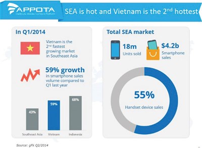Thị trường mobile game của Việt Nam có tiềm năng để phát triển vì Việt Nam được đánh giá là thị trường có số người sử dụng internet lẫn sở hữu smartphone tăng nhanh chóng. Theo đó, Việt Nam đứng thứ hai thế giới về tốc độ tăng trưởng thiết bị smartphone với 17 triệu máy.