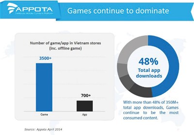 Nếu doanh số ước đạt của ngành công nghiệp game Việt Nam năm 2014 là 6.000 tỷ đồng, thì DN trong nước chỉ chiếm 60% (kể cả sản xuất lẫn phát hành), còn 40% thuộc về các DN nước ngoài phát hành dịch vụ xuyên biên giới.