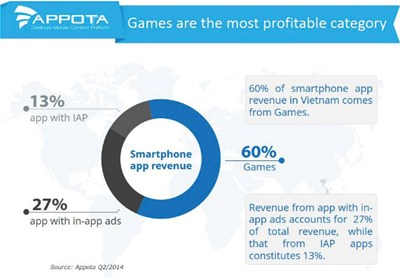 Năm 2014, doanh thu của thị trường game Việt Nam ước đạt khoảng 6.000 tỷ đồng, bằng với năm 2013, trong đó game mobile chiếm khoảng 1.000 tỷ đồng.