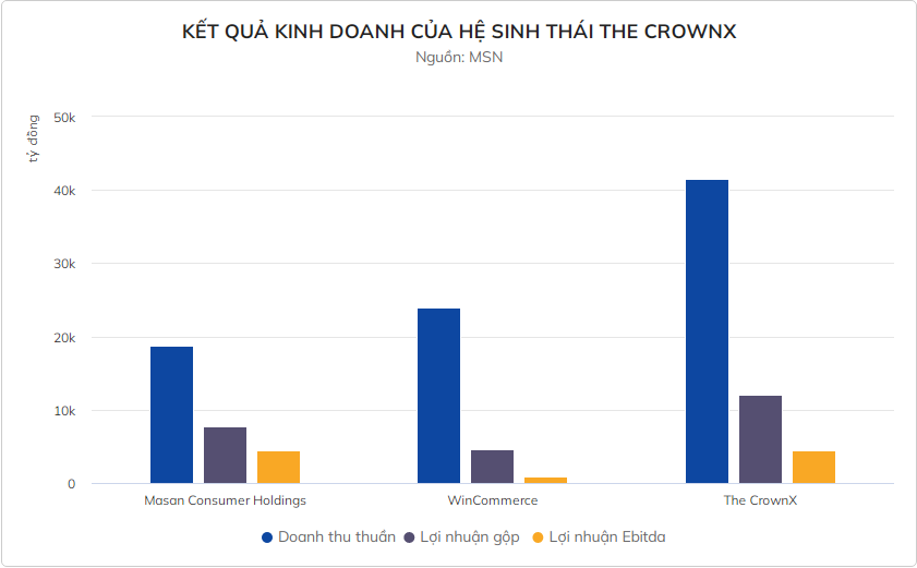 Trong khi đó, tập đoàn vẫn giữ được định giá độc lập tại 2 công ty con của The CrownX là Công ty CP Phát triển và Thương mại Dịch vụ VCM - chủ sở hữu 100% vốn WinCommerce (tên cũ Vincommerce) - vận hành chuỗi siêu thị Vinmart, Vinmart+ (một số đã đổi tên thành Winmart) và Công ty TNHH Masan Comsumer Holdings - sở hữu Công ty CP Hàng tiêu dùng Masan (MCH).
