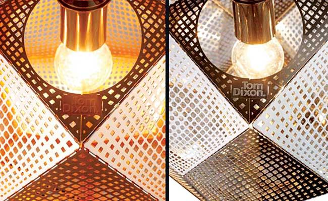 Đèn Etch Web - Tiếp nối thành công của Etch, Tom Dixon tung ra Etch Web. Vẫn sử dụng chất liệu đồng, nhưng Etch Web được thiết kế như một món trang sức quý giá hình cầu với các chi tiết mảnh mai đầy quyến rũ. Mỗi khi được thắp sáng, chiếc đèn rực rỡ trong vầng hào quang ấm áp, in bóng hàng ngàn hoa văn hình khối trên tường và sàn nhà.