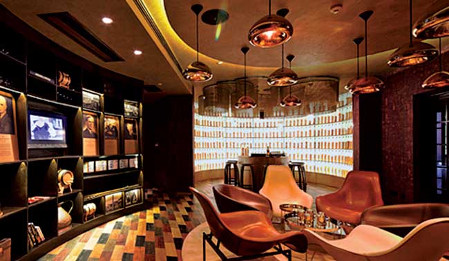 Đèn Void nhẹ nhàng thắp sáng khu vực lounge siêu sang của ngôi nhà Johnnie Walker ở Thượng Hải.