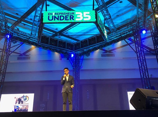 Tống Nhật Dương đang đóng vai trò diễn giả khách mời trong sự kiện Vinh danh doanh nhân dưới 35 tuổi ở Thái Lan