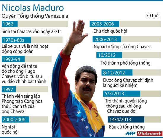 Quyền Tổng thống Nicolás Maduro, ứng cử viên của Đảng xã hội thống nhất Venezuela (PSUV), đã đánh bại ứng cử viên của liên minh đối lập Bàn đoàn kết dân chủ (MUD) Henrique Capriles trong cuộc bầu cử ngày 14/4 để trở thành tổng thống mới của quốc gia có trữ lượng dầu mỏ lớn nhất thế giới này.Theo thông báo của Hội đồng bầu cử quốc gia (CNE), với 99,12% số phiếu được kiểm, ông Maduro giành được 50,66% phiếu ủng hộ, trong khi đối thủ Capriles được 49,07% số cử tri hậu thuẫn, và với kết quả không thể đảo ngược này, ông Maduro sẽ đảm nhiệm trọng trách hoàn tất nhiệm kỳ thứ 3 của cố Tổng thống Hugo Chávez (2013-2019).
