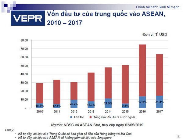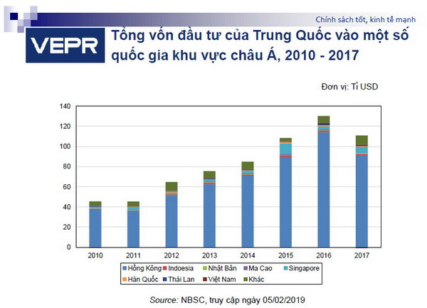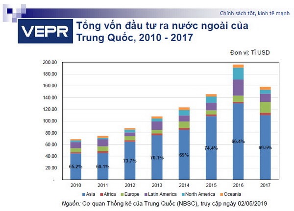 Còn tính riêng trong khu vực châu Á, tỷ trọng đầu tư vào Việt Nam tính trong tương quan tổng đầu tư Trung Quốc ra nước ngoài rất khiêm tốn.