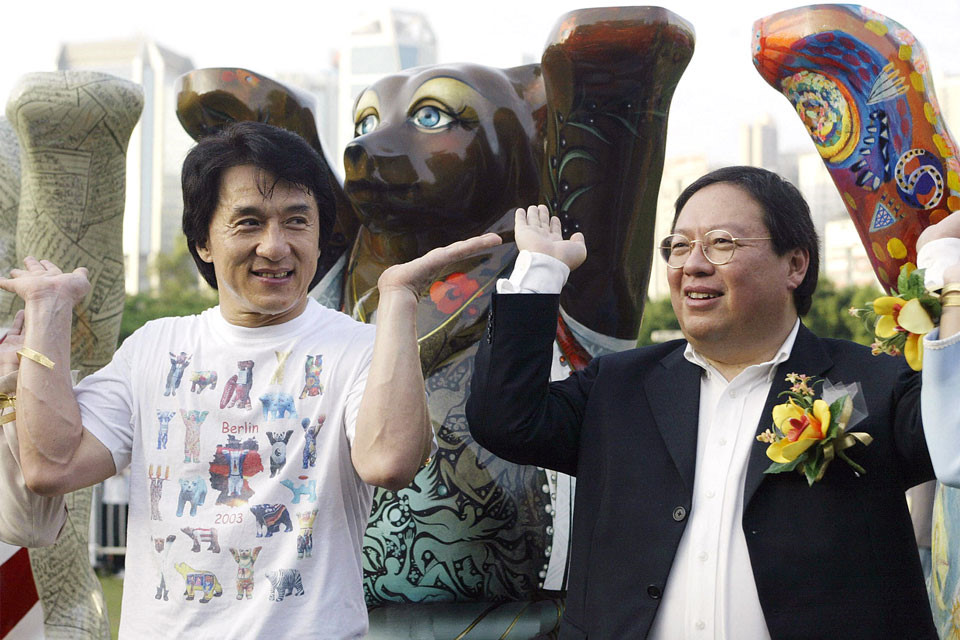 Patrick Ho (phải) và diễn viên Thành Long trong một hoạt động gây quỹ. Ảnh: AFP.