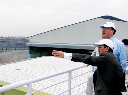 Ông David Dương giới thiệu Khu liên hợp xử lý chất thải Đa Phước với ông Lê Thành Ân, thời điểm đó là Tổng lãnh sự Mỹ tại TP.HCM. Ảnh: VWS.
